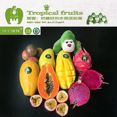 【當(dāng)季水果】大吉大利水果套餐,發(fā)外省快遞順豐包郵,(不含偏遠(yuǎn)省份)。甜甜蜜蜜,大吉大利把最好的水果獻(xiàn)給你。套餐水果包含:本地金煌芒2個(約2斤)、 紅心火龍果2個(約2.5斤)、 紅心木瓜一個(約2斤)、百香果5個。浪漫情人節(jié),讓猩猩陪在你身邊!